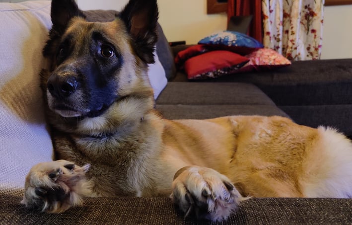 He's a rescued and adopted GS-Indi mix; adopted him right before the lockdown in 2020 while we were at Gurgaon.